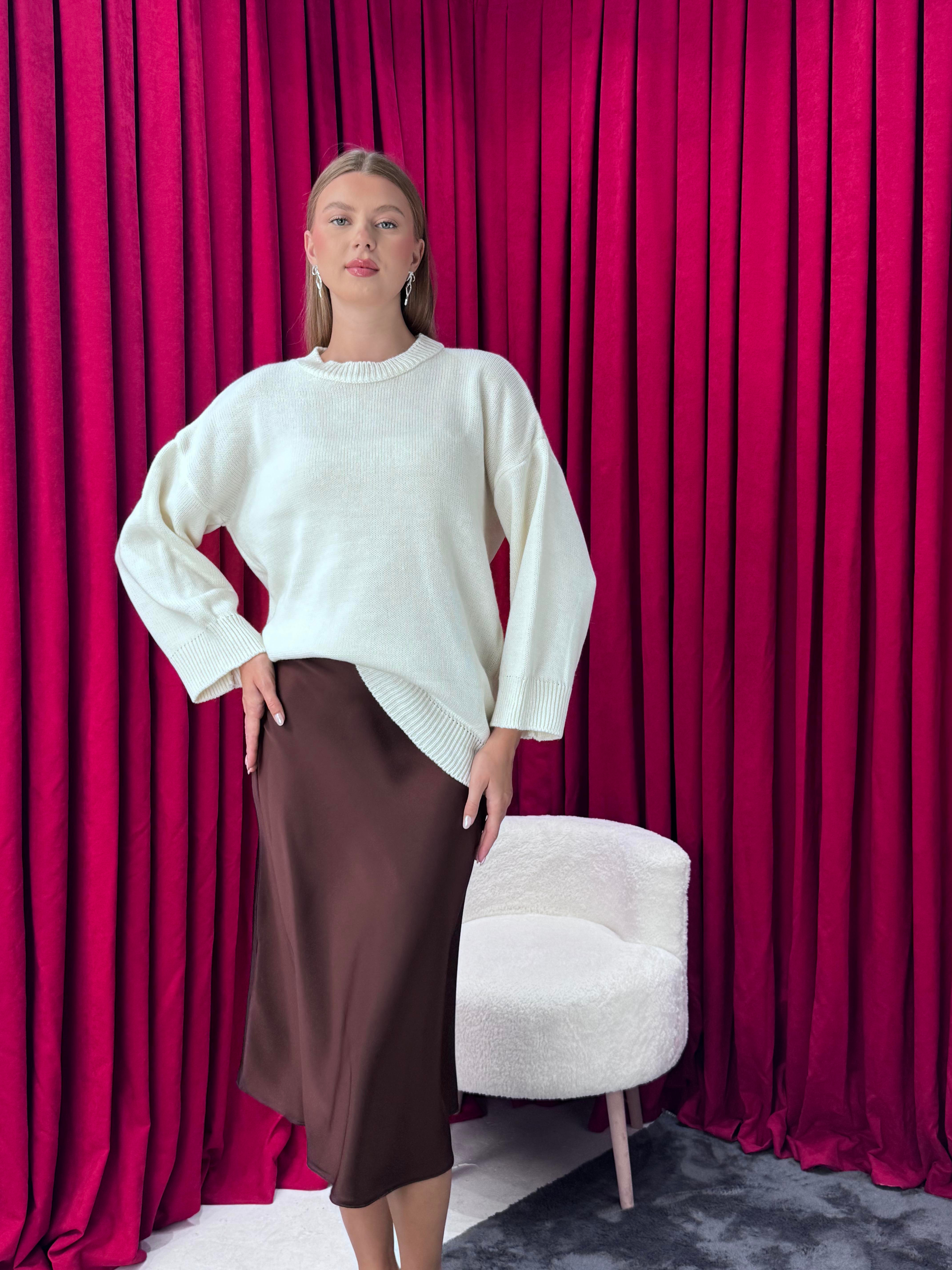 Kadın Oversize Salaş Triko Kazak – Bisiklet Yaka Rahat Kesim